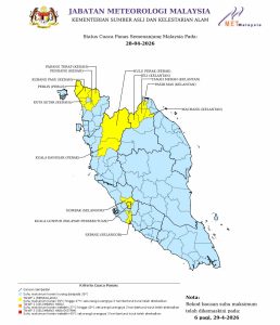 KUALA LUMPUR: Jabatan Meteorologi Malaysia (MetMalaysia) mengeluarkan amaran ribut petir, hujan lebat dan angin kencang melibatkan enam...