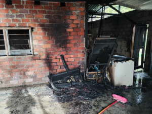 KUCHING: Sebuah rumah setingkat berstruktur separuh kekal di Kampung Segedup, Jalan Stapok Batu Kawa, mengalami kebakaran pada...