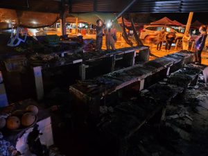 MUSNAH…Sebahagian barangan jualan di Pasar Tamu Simpang Bekenu dekat sini musnah terbakar dalam satu kejadian kebakaran yang...