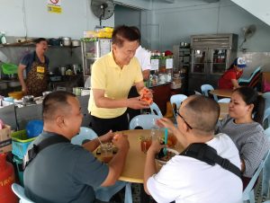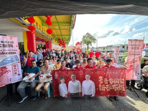 KUCHING: Ahli Dewan Undangan Negeri (ADUN) Batu Kitang, Lo Khere Chiang bersama penduduk dan peniaga di Pasar...