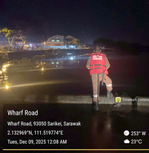 SARIKEI: Dua anggota bomba dari Balai Bomba dan Penyelamat (BBP) Sarikei telah menjalankan rondaan pemantauan monsun timur...