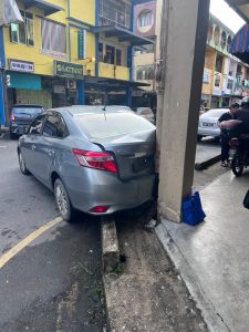 KEMALANGAN….Kemalangan berlaku di kawasan lot kedai, Jalan Masjid Lama, hari ini. Foto IPD Sarikei SARIKEI: Ketua Polis...