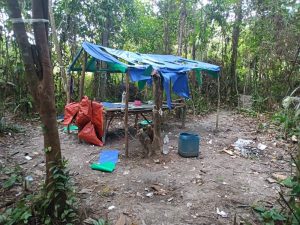 BINTANGOR: Sarang penagih dadah yang diperkukuh dengan kawat duri di kawasan hutan Jalan Hing Kwong, Kelupu, di...