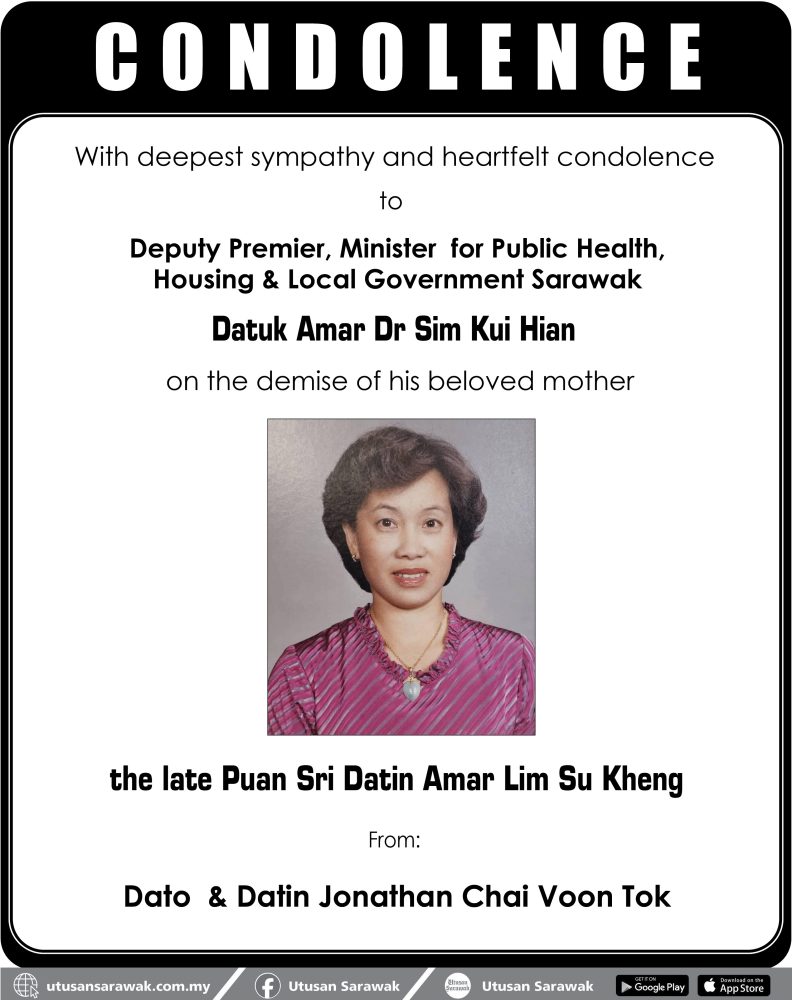 KUCHING: Timbalan Premier, Datuk Amar Dr Sim Kui Hian, mengucapkan terima kasih yang tidak terhingga kepada orang...