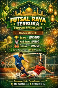 LINGGA: Penganjuran Futsal Raya Terbuka Kampung Bakong 2026 dijangka bakal memeriahkan suasana sambutan Aidilfitri tahun ini dengan...