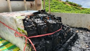 BATU NIAH: Sebuah lori mengalami kebakaran melibatkan 100 peratus muatan yang terdiri daripada bateri kereta dan pakaian,...