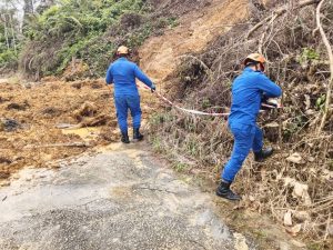 SARATOK: Angkatan Pertahanan Awam Malaysia (APM) Daerah Saratok bertindak pantas menangani kejadian tanah susur yang menghalang jalan...
