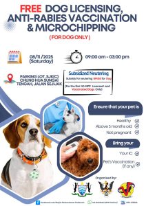 KUCHING: Majlis Perbandaran Padawan (MPP) akan menganjurkanProgram Lesen Anjing Percuma, Vaksinasi Anti-Rabies dan Pemasangan Mikrocipuntuk anjing di...