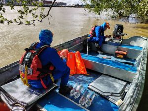 LATIHAN….Anggota APM Sarikei dan Meradong menjalankan latihan latihan taktikal dan komunikasi di kawasan sungai. Foto APM Sarikei ...