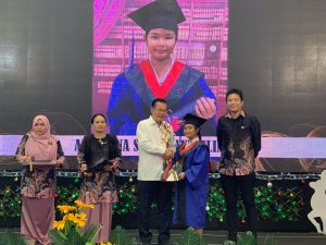 Noriha Ali bersama barisan pentadbir sekolah menyampaikan anugerah kepada pelajar cemerlang pada MAKEM 2025 di SMK Kemena,...