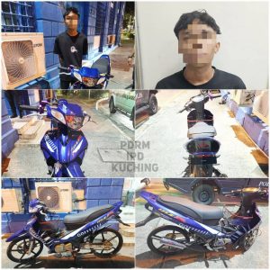 KUCHING: Seorang lelaki berusia 22 tahun ditahan dan sebuah motosikal curi berjaya dirampas daripadanya semasa rondaan pencegahan...