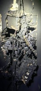 MUSNAH…Keadaan kotak suis selepas terbakar dalam kejadian di kawasan perumahan Curtin Water, Senadin di Miri, awal pagi...