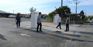 DINAIK TARAF…Ahli Parlimen Miri, Chiew Choon Man semasa meninjau laluan masuk ke Sekolah Kebangsaan (SK) Riam Batu...