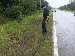 TELAH DIALIH KE TEPI… Besi-besi telah dialih ke tepi jalan sebelum pihak polis sampai di lokasi. Foto...
