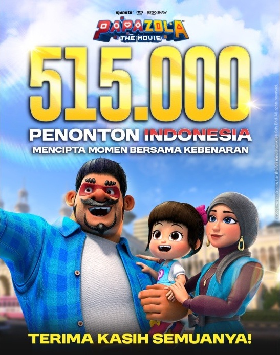 KUALA LUMPUR: Filem animasi tempatan, ‘Papa Zola The Movie’ terbitan Monsta dengan kerjasama Astro Shaw, mencipta satu lagi kejayaan di peringkat antarabangsa selepas muncul sebagai filem Malaysia paling mendapat sambutan di Indonesia, dengan 515,000 penonton sepanjang 35 hari tayangan di negara itu.