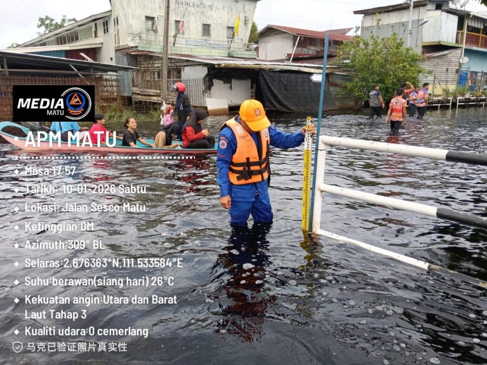 Angkatan Pertahanan Awam Malaysia (APM) Daerah Matu dalam satu kenyataan memaklumkan hasil tinjauan mendapati paras air di beberapa kampung dan kawasan rendah termasuk Kampung Tian, Taman Sejahtera, Kampung Jemoreng, Kampung Bertong serta Pekan Matu berada dalam keadaan menurun.