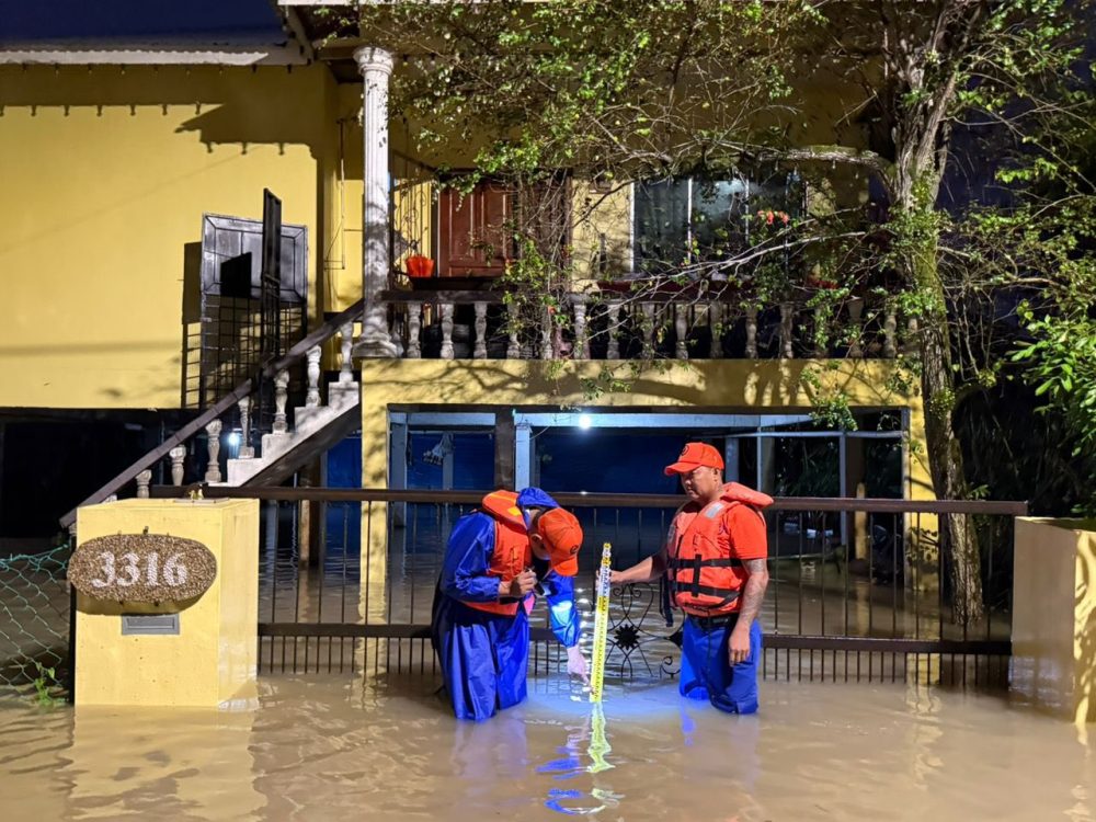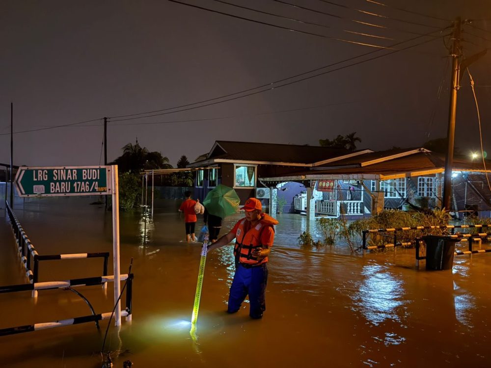 KUCHING: Angkatan Pertahanan Awam (APM) Daerah Kuching melaksanakan pemantauan rapi di kawasan berisiko banjir di Kampung Sinar Budi Baru, di sini, hari ini.