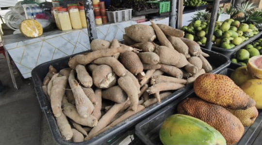 Dari sayur paku-pakis, rebung, hingga buah eksotik hutan Sarawak seperti dabai, engkala dan durian, semuanya boleh didapati di sini.