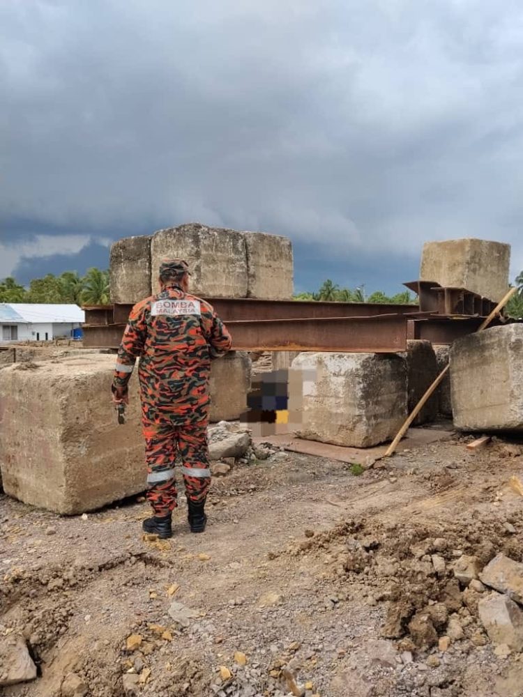 “Pasukan tiba di lokasi pada 2.14 petang dan mendapati mangsa telah dihempap oleh sebuah bongkah konkrit yang digunakan untuk ujian beban pada permukaan tanah di tapak projek pembinaan berkenaan.