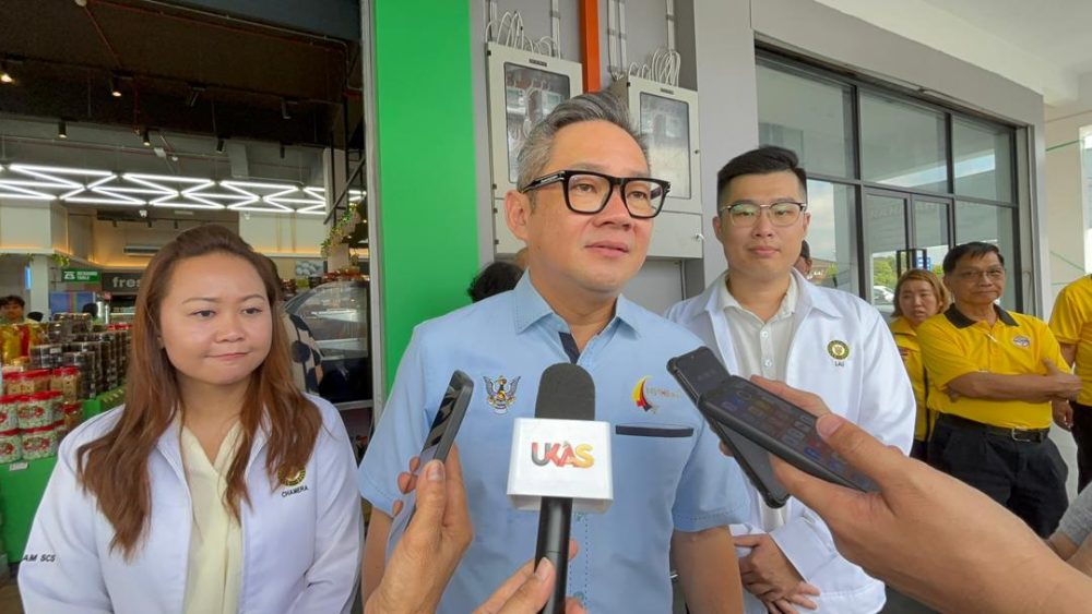 TIMBALAN Menteri Kesihatan Awam, Perumahan dan Kerajaan Tempatan, Michael Tiang ketika ditemui pemberita selepas merasmikan pelancaran program Sumbangan Keperluan Asas Sarawak (SKAS) bagi kawasan Dewan Undangan Negeri (DUN) Pelawan di Jumbo Grocer, Sibu, hari ini.