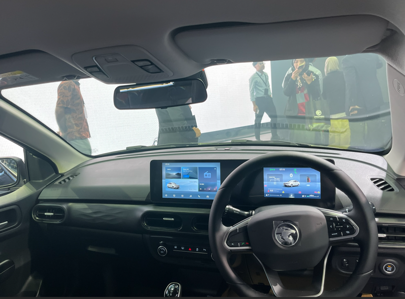 Kabin hadir dengan dwi-skrin 16 inci bersepadu menyokong Apple CarPlay® dan Android Auto™ tanpa wayar, lampu utama automatik, Follow-Me-Home serta pelarasan lampu utama.