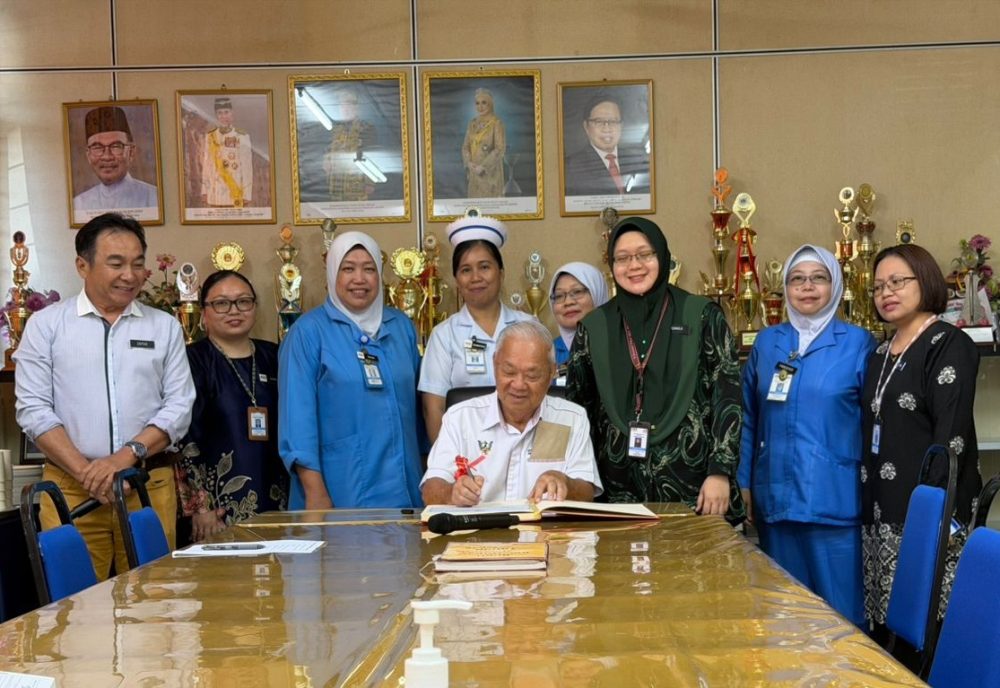 Ketibaan beliau disambut mesra oleh Pengarah Hospital, Dr. Dayang Suhaila Abang Mohamed bersama kakitangan hospital yang turut hadir memeriahkan sesi lawatan tersebut.