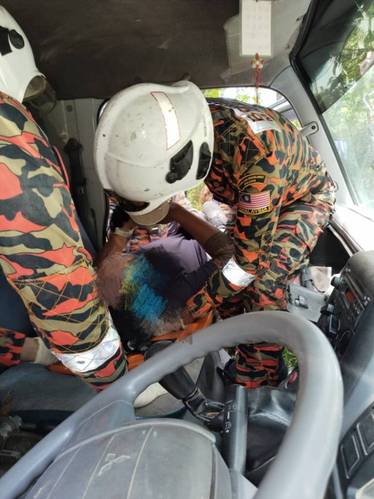 “Setibanya pasukan di tempat kejadian pada 12.48 tengah hari, didapati kemalangan melibatkan lori tiga tan yang terbabas ke dalam semak.