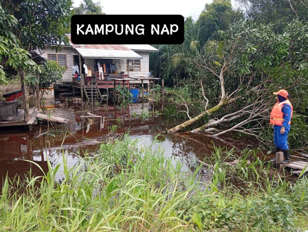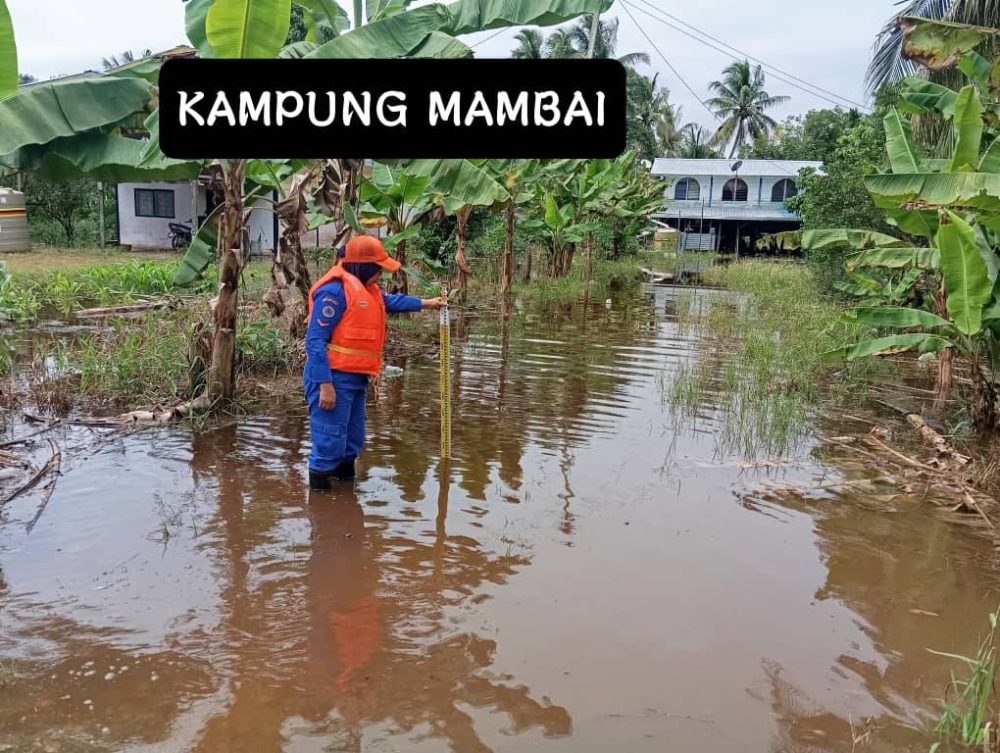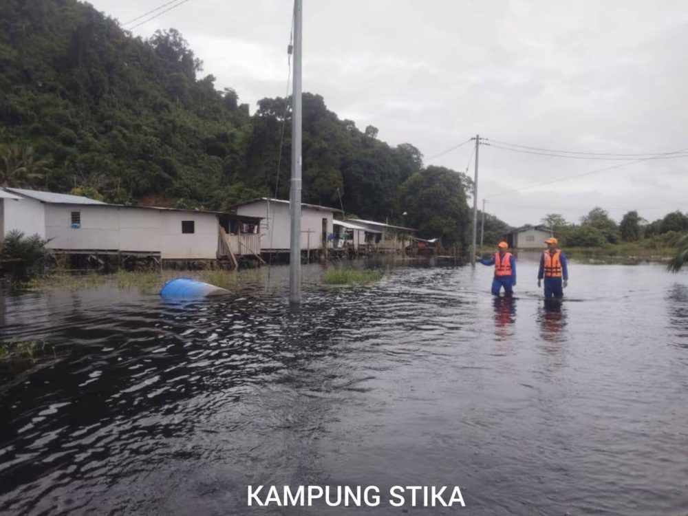 Hasil pemantauan mendapati paras air di Kampung Stika menunjukkan kenaikan dan bertakung akibat hujan serta air pasang yang berlaku.