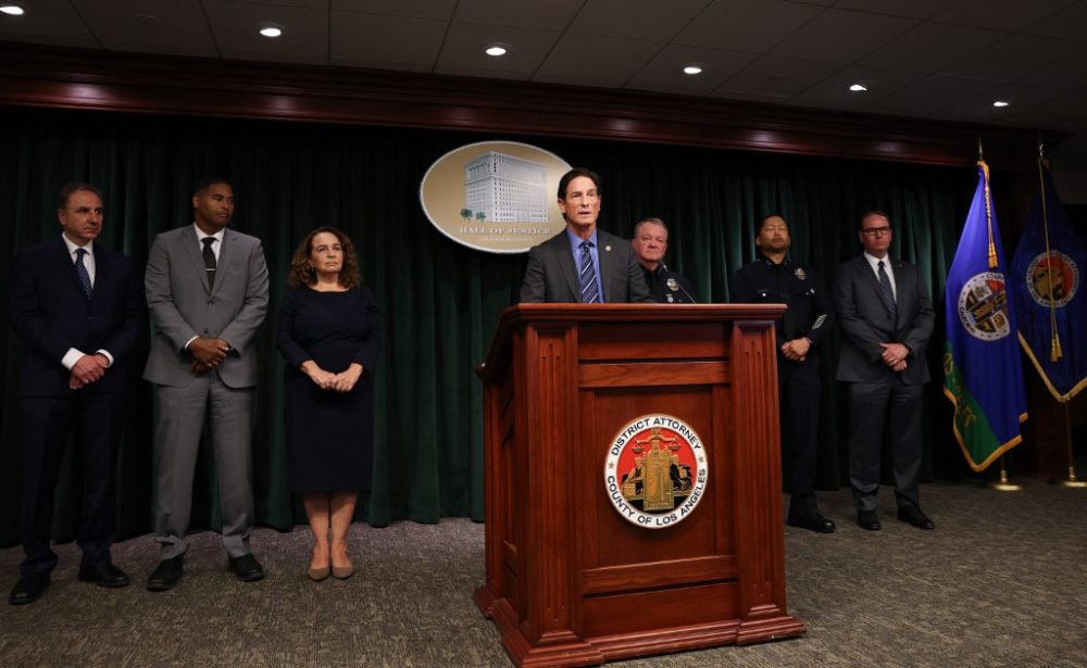 PEGUAM Daerah Daerah Los Angeles, Nathan Hochman, bercakap pada sidang media bagi memberikan perkembangan terkini siasatan berhubung kematian pengarah Rob Reiner dan isterinya, Michele, di bangunan Hall of Justice, pusat bandar Los Angeles, pada 16 Disember 2025. Foto AFP