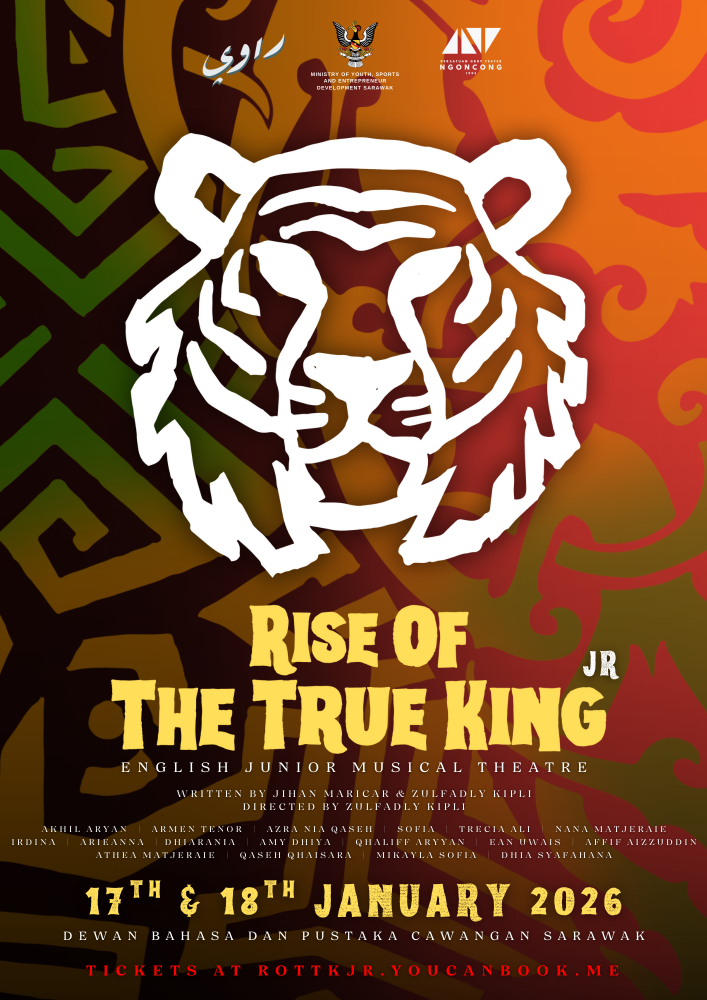 KUCHING: Pementasan teater muzikal kanak-kanak berbahasa Inggeris bertajuk Kebangkitan Raja Sejati (Junior) dipentaskan oleh Sang Rawi Sdn. Bhd. pada Sabtu dan Ahad ini di Balai Budaya, Dewan Bahasa dan Pustaka (Cawangan Sarawak).
