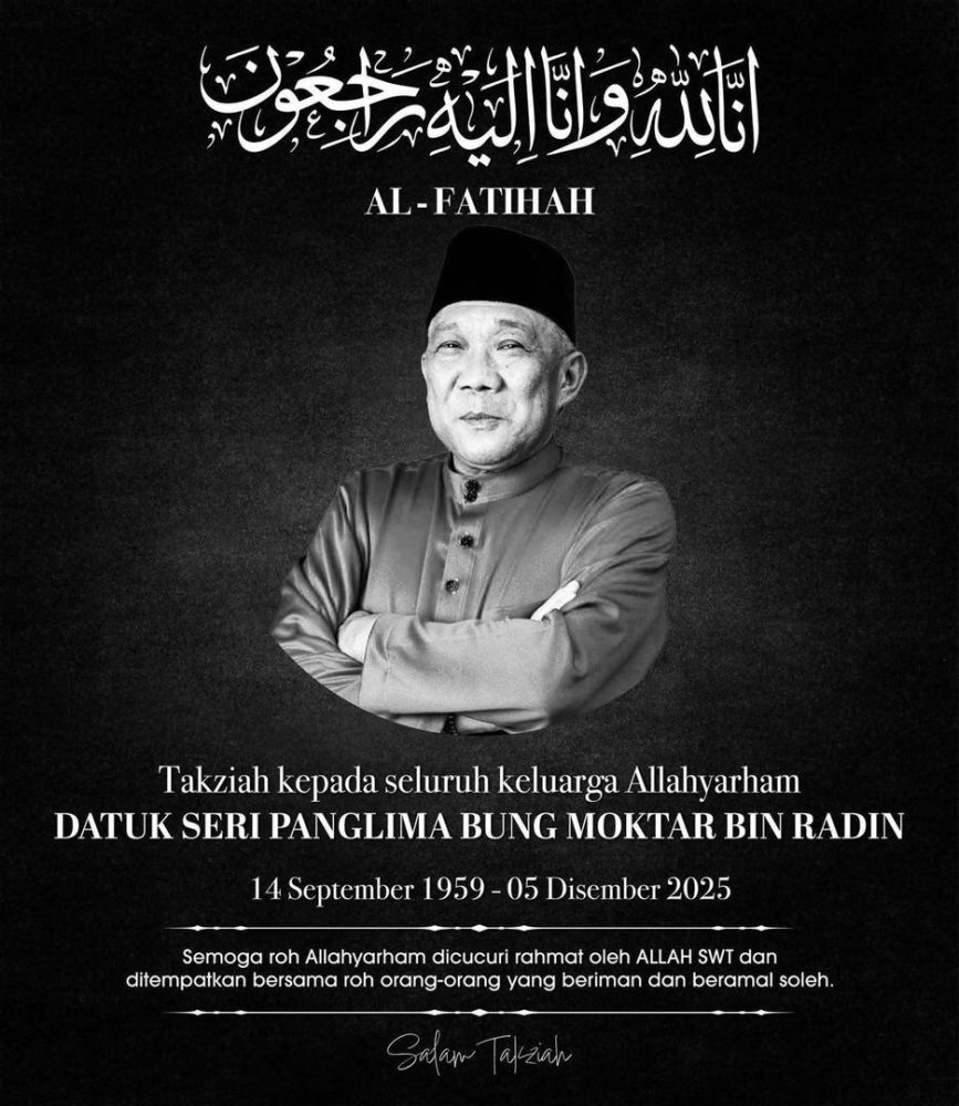 Beliau turut menzahirkan ucapan takziah kepada seluruh keluarga Allahyarham dan berharap mereka tabah menghadapi kehilangan tersebut.
