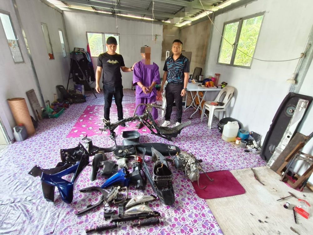 Suspek mengaku telah meleraikan komponen motosikal tersebut dan menyimpannya di kediaman beliau.