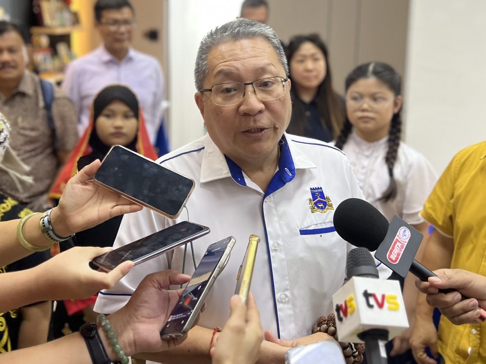 DATUK Bandar Kuching Selatan, Dato Wee Hong Seng, ketika ditemui media selepas sidang media Program Menyemai Jiwa Muda melalui Seni Kaligrafi, di Kuching hari ini. Foto Adele Rissa