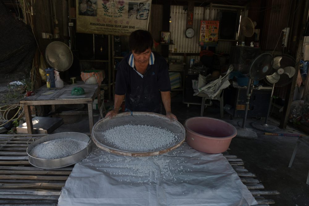 Anak kedua daripada tiga beradik yang mesra dipanggil Ah Huat berkata bedak sejuk yang dihasilkan masih mengekalkan cara tradisional dengan menggunakan beras tempatan dan air sahaja, namun proses pembuatannya memerlukan kesabaran tinggi.