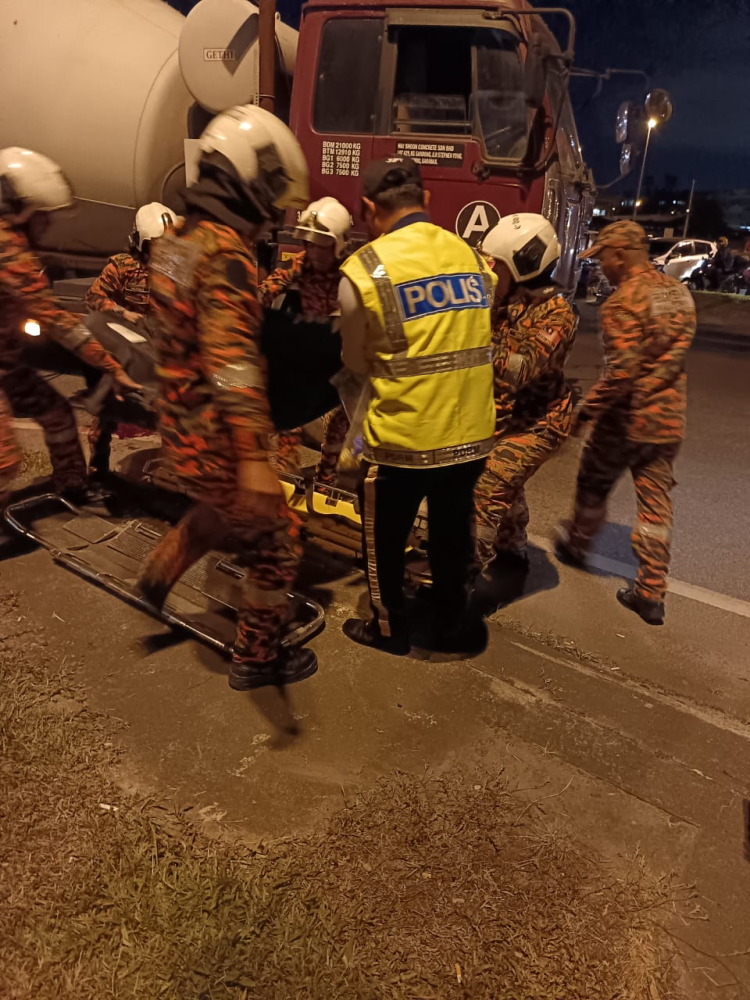 “Terdapat seorang mangsa iaitu penunggang motosikal didapati berada di bawah lori simen dalam keadaan tidak sedarkan diri.