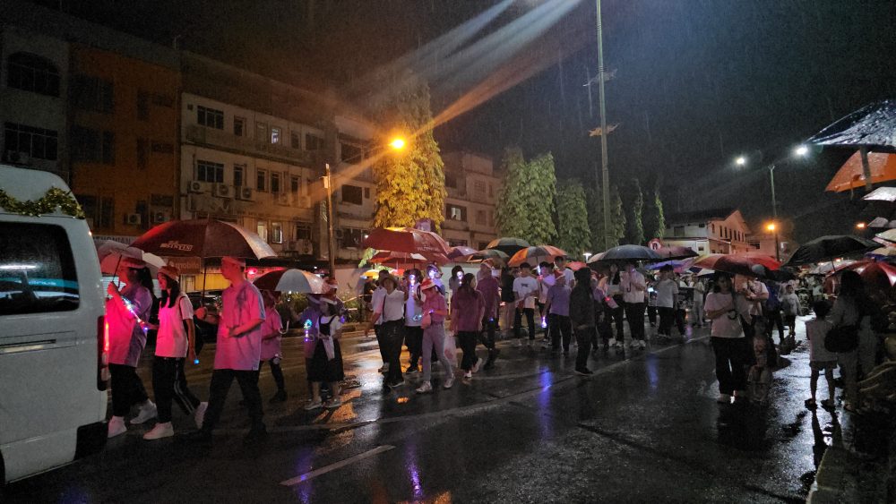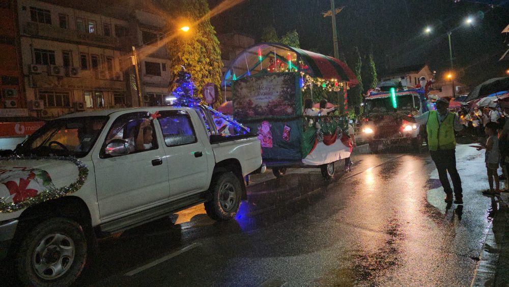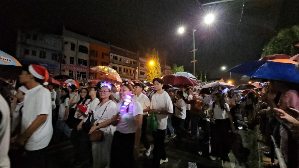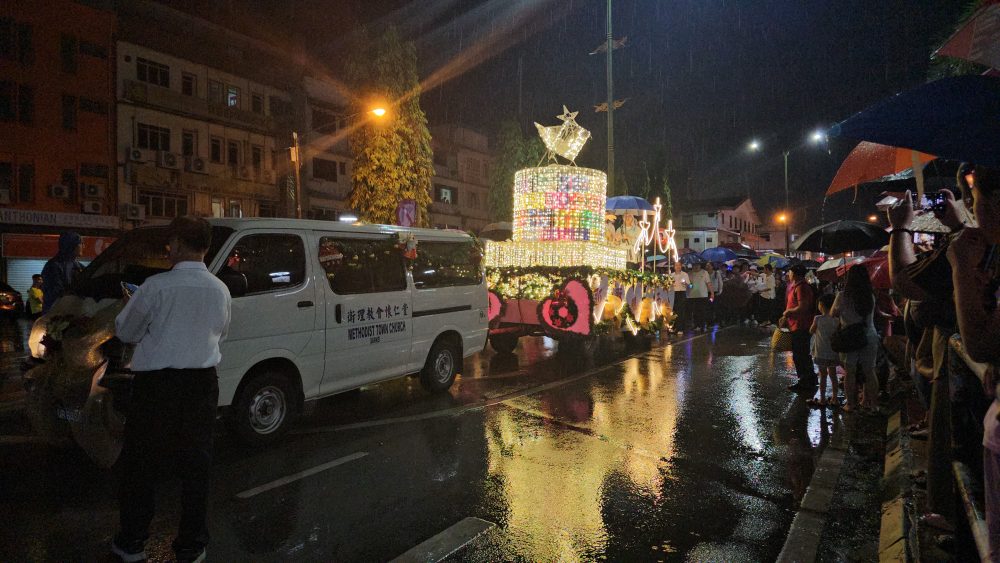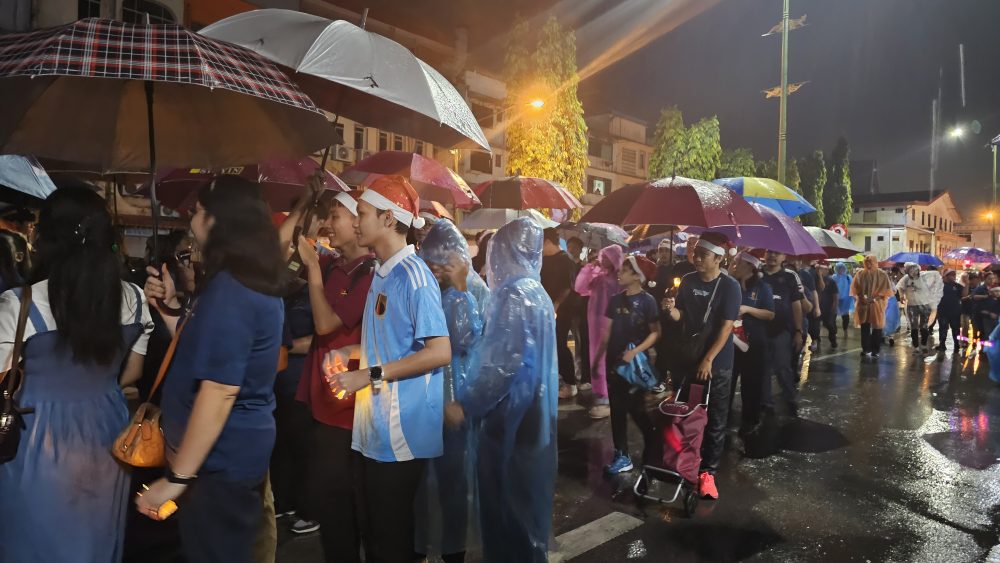 HUJAN LEBAT….Hujan lebat tidak mematahkan semangat para peserta dan orang ramai yang menyaksikan perarakan Krismas ACS 2025.