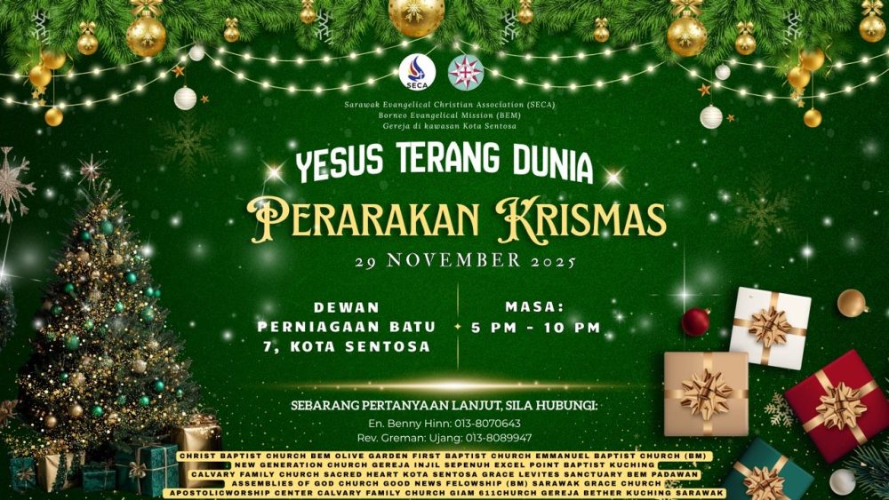 Acara yang membawa tema ‘Yesus Terang Dunia’ itu akan bermula dengan upacara ibadah Krismas pada 6.00 petang di Dewan Perniagaan Batu 7, diikuti perarakan sejauh 1.5 kilometer mengelilingi kawasan komersial Kota Sentosa pada sekitar 7.45 malam.