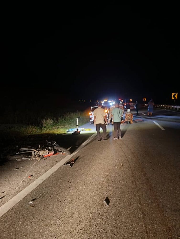BAU: Seorang lelaki maut dalam kemalangan membabitkan sebuah kereta Perodua Bezza dan motosikal di Lebuh Raya Pan Borneo Lundu–Bau berhampiran Kampung Stenggang awal pagi tadi.