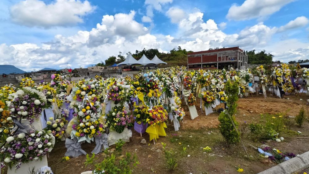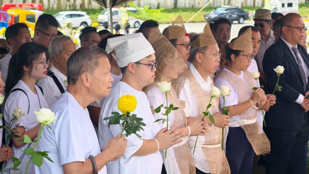 KUCHING: Keluarga kepada Timbalan Premier Sarawak, Datuk Amar Dr Sim Kui Hian, bersama sanak saudara, rakan-rakan dan para pemimpin masyarakat berkumpul untuk memberikan penghormatan terakhir kepada mendiang ibunya, Puan Sri Datin Amar Lim Su Kheng, pada upacara pengebumian yang diadakan di sini, hari ini.