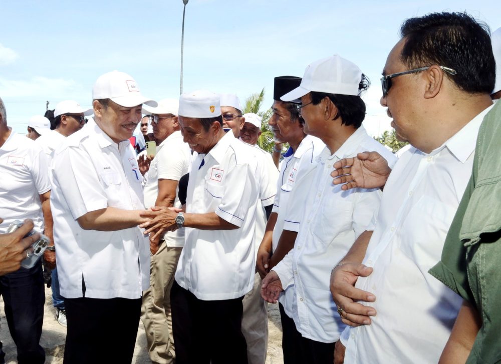PENGERUSI Gabungan Rakyat Sabah (GRS) yang juga calon N.12 Sulaman, Datuk Seri Hajiji Noor bersalaman dengan jentera kempen GRS ketika menghadiri pertemuan bersama jentera pilihan raya kawasan itu di Dewan Rumpun Bajau Samah, Kampung Lok Batik, hari ini. Foto Bernama