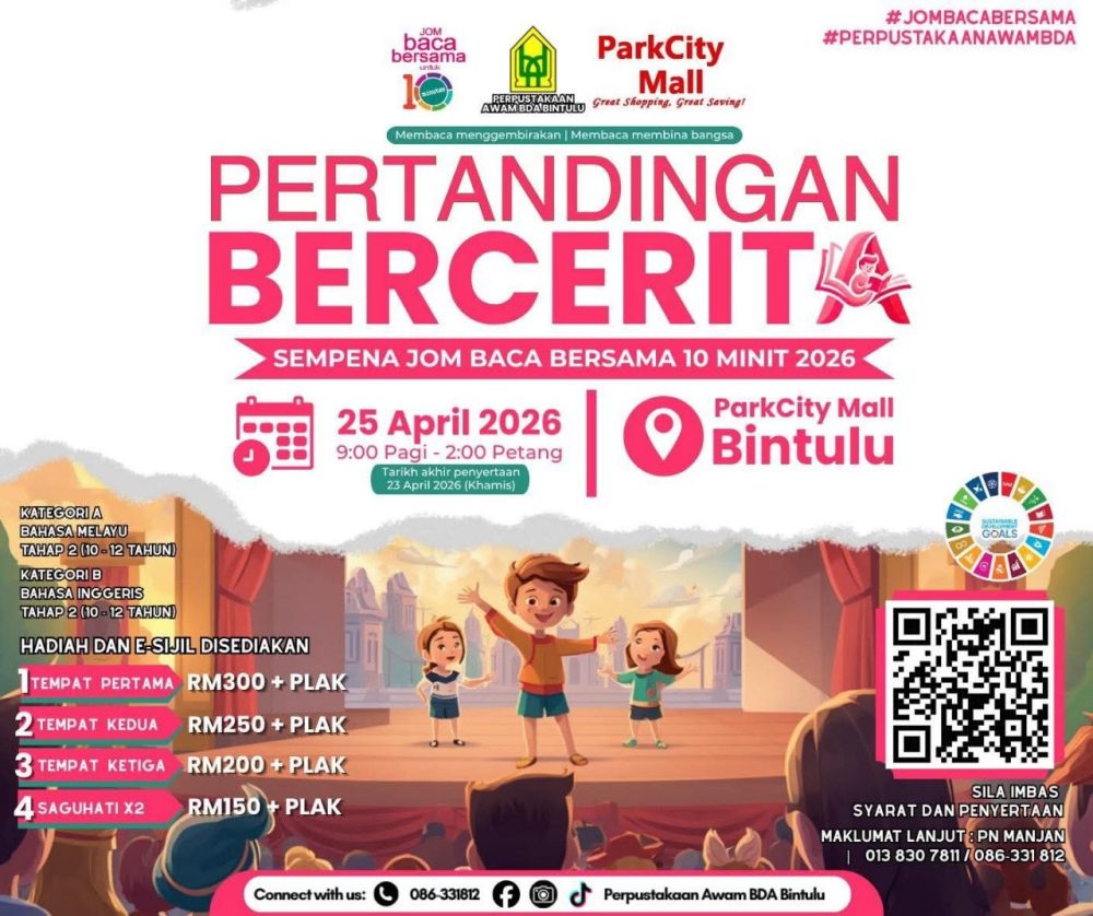 BINTULU: Perpustakaan Awam BDA Bintulu bakal menganjurkan Pertandingan Bercerita 2026 sempena Program Jom Baca Bersama 10 Minit bagi menggalakkan minat membaca serta meningkatkan keyakinan kanak-kanak dalam seni penceritaan.