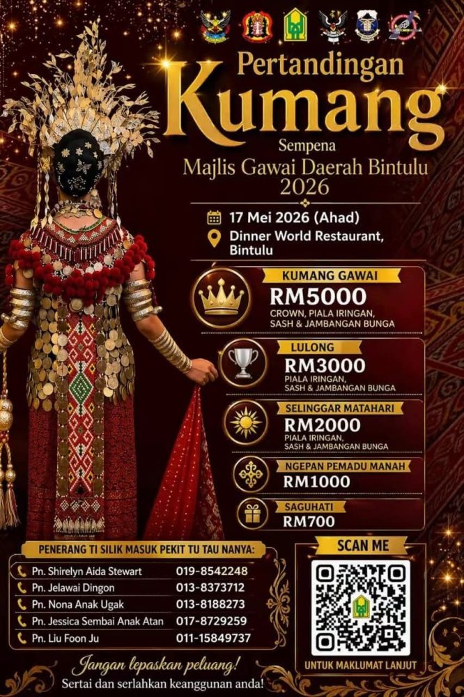 BINTULU: Penyertaan bagi Pertandingan Kumang sempena Majlis Gawai Daerah Bintulu 2026 kini dibuka kepada wanita yang berminat untuk mengambil bahagian dalam acara budaya berprestij tersebut.