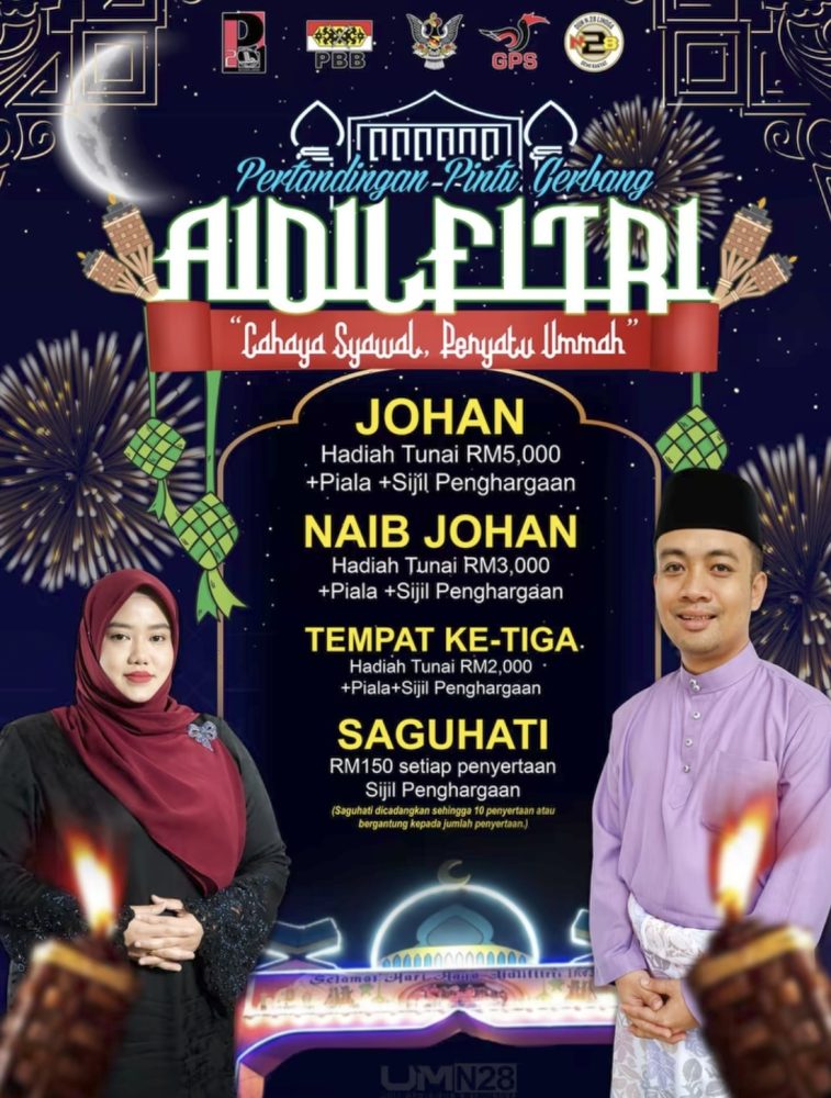 PERTANDINGAN Pintu Gerbang Aidilfitri 2026 yang mengangkat tema “Cahaya Syawal, Penyatu Ummah”.  Foto: ADUN Lingga.