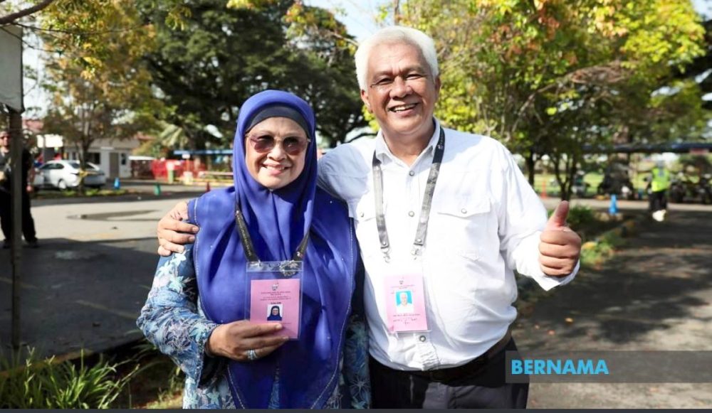 CALON adik-beradik di DUN Kukusan laitu calon Warisan, Ma’mun Sulaiman dan calon Barisan Nasional Chaya Sulaiman (kiri). Foto Bernama.