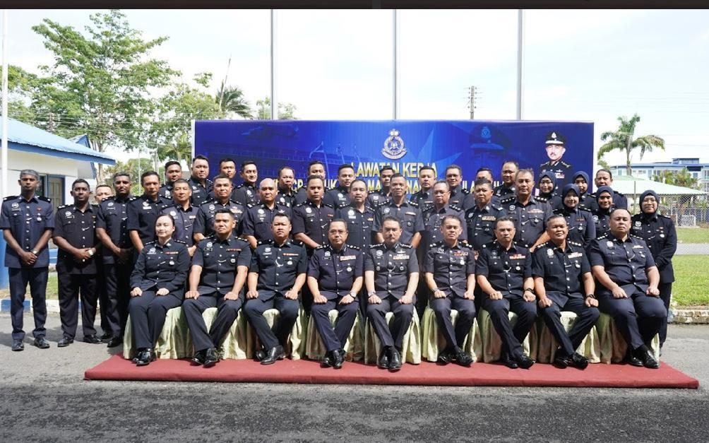 UNTUK ALBUM…CP Datuk Mohamad Zainal Abdullah (duduk lima dari kiri) merakam kenangan bersama anggota pasukan polis Ibu Pejabat Polis Daerah Sibu pada lawatan kerjanya hari ini. Foto IPD Sibu