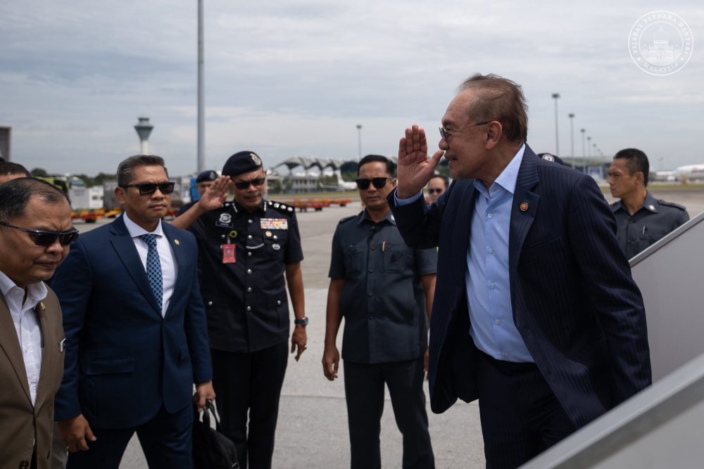 Sebuah pesawat sewa khas Malaysia Airlines yang membawa Perdana Menteri berlepas dari Lapangan Terbang Antarabangsa Kuala Lumpur (KLIA) di sini pada pukul 12.35 tengah hari.