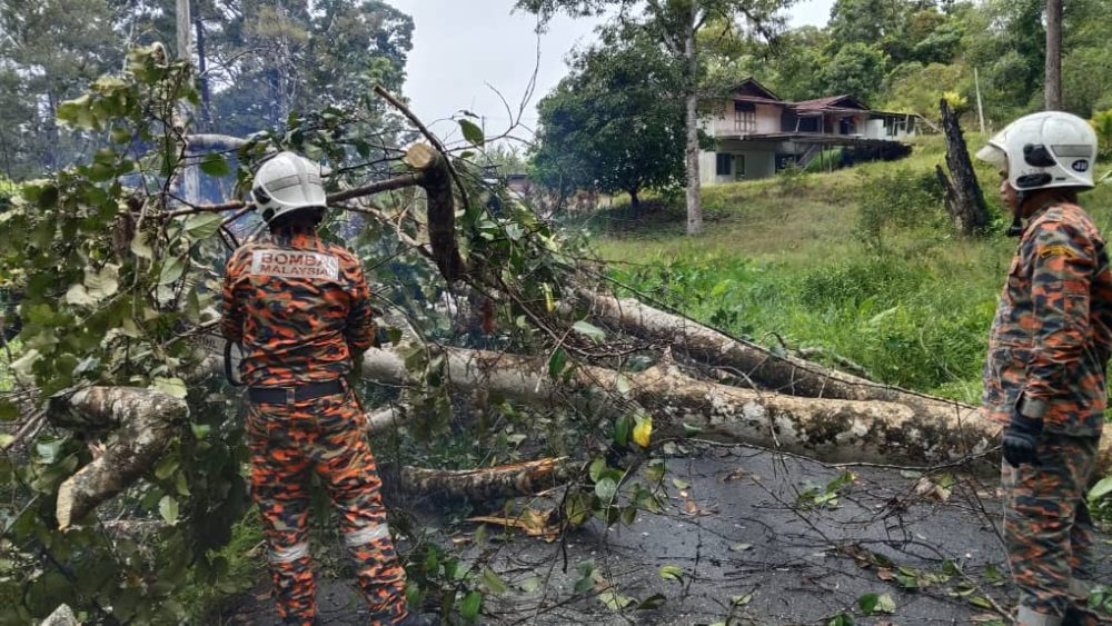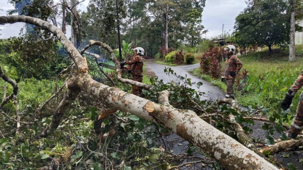 • Pokok rambutan tumbang halang lalu lintas di Jalan Kuong Kok