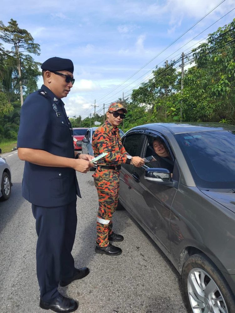 Selain itu, risalah keselamatan jalan raya daripada Jabatan Siasatan dan Penguatkuasaan Trafik turut diedarkan kepada pengguna jalan raya di lokasi berkenaan.