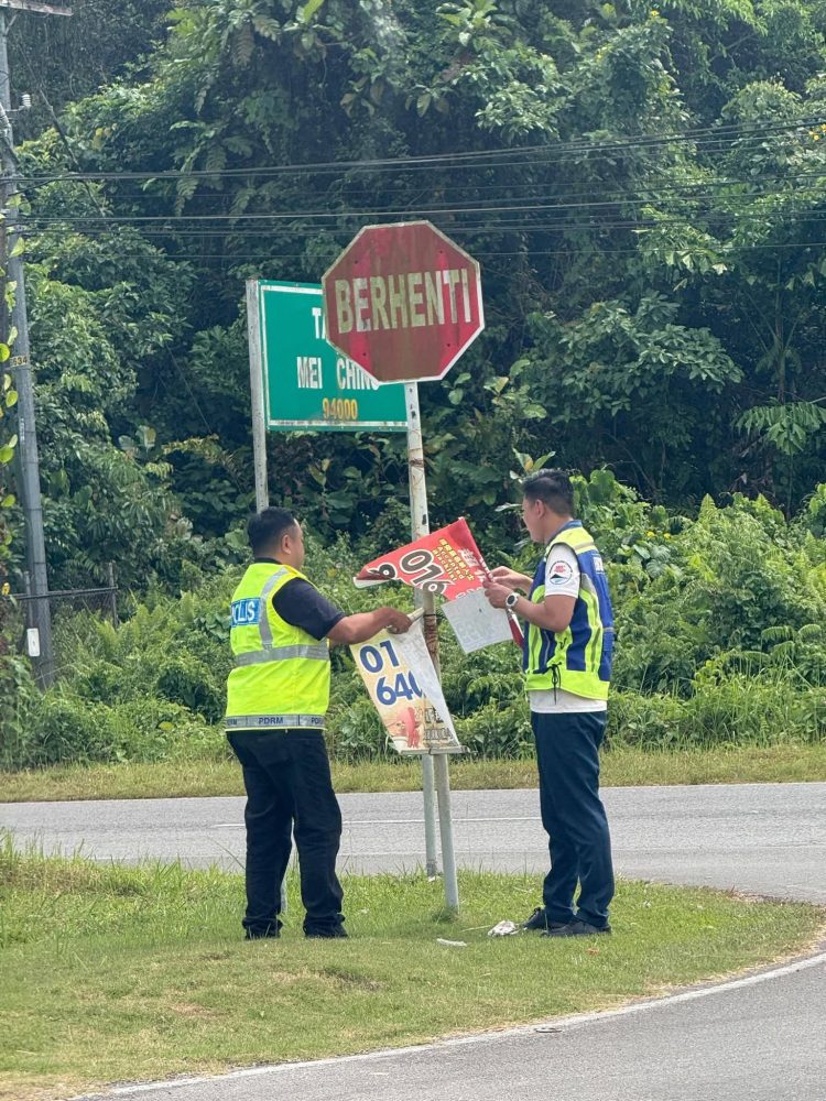 Polis Bau perangi kegiatan along, sepanduk haram diturunkan