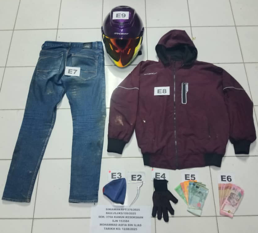 Suspek kini ditahan untuk siasatan di bawah Seksyen 379A Kanun Keseksaan kerana kesalahan mencuri motosikal serta kesalahan memiliki senjata berbahaya.